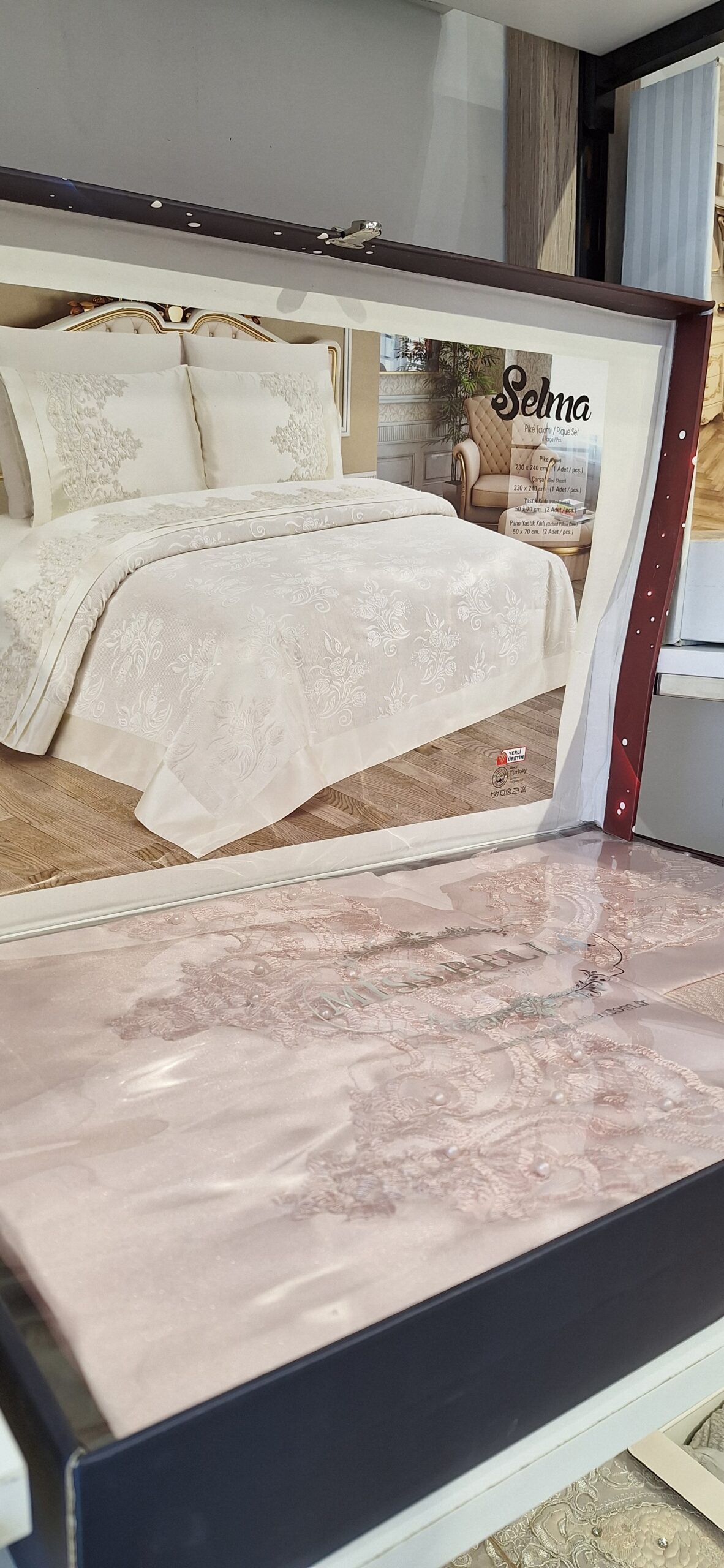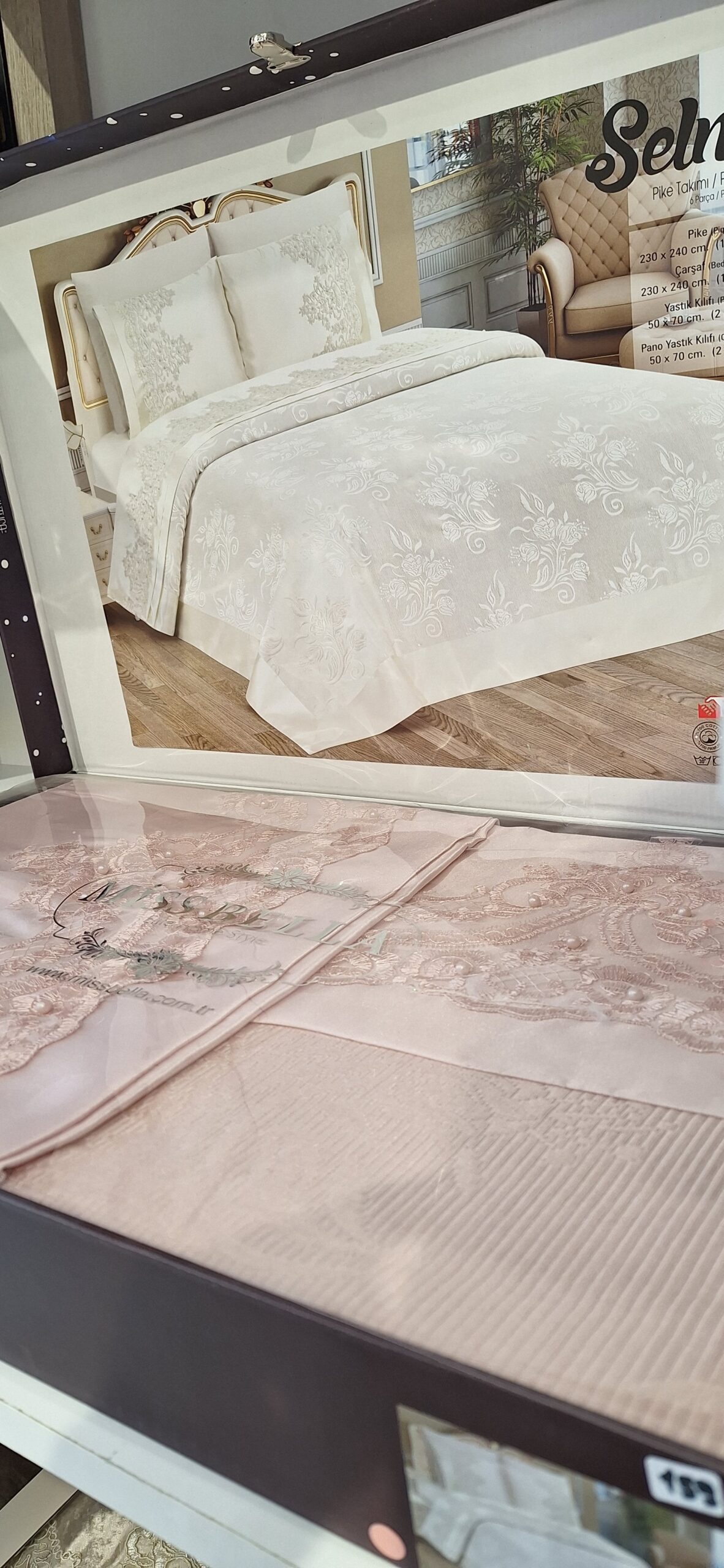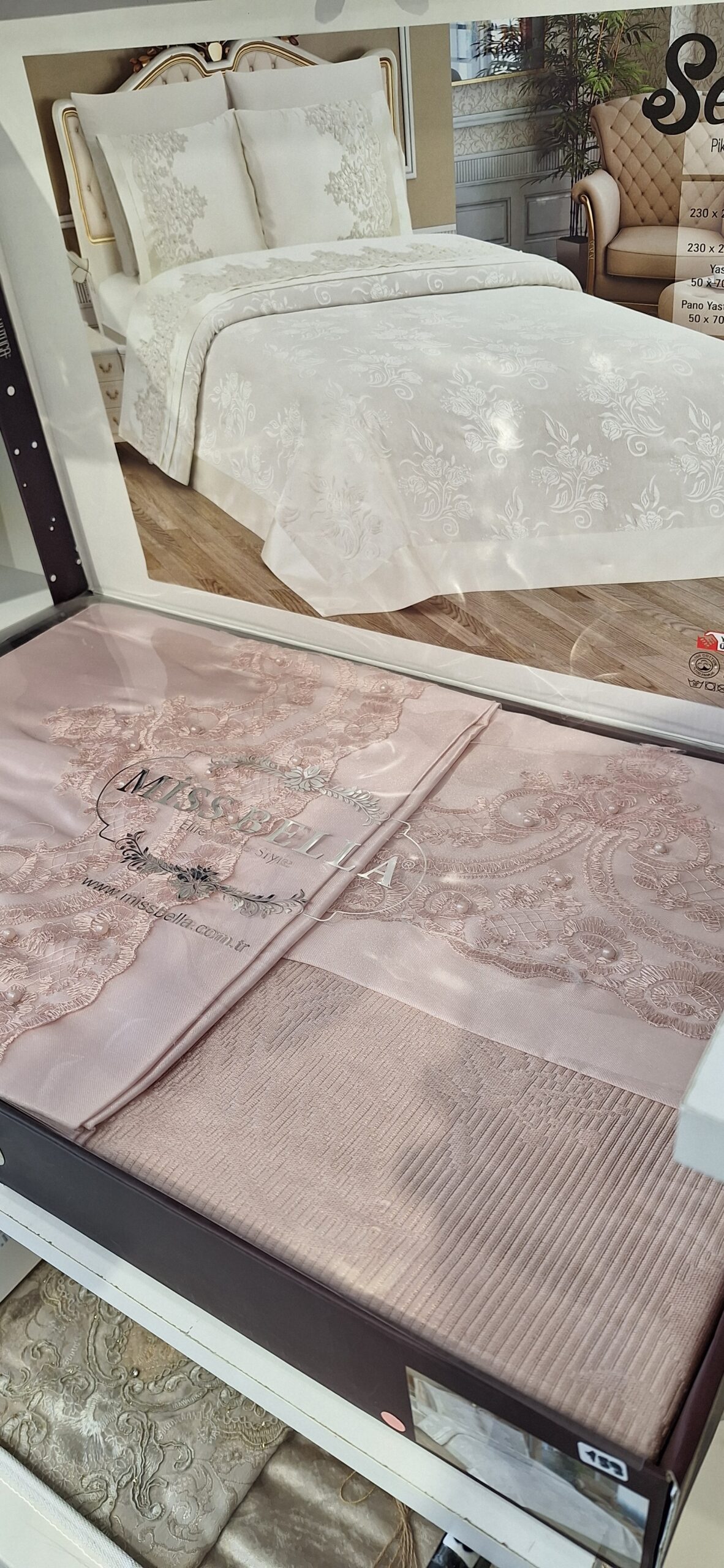Élevez le raffinement de votre chambre avec le modèle Selma par Miss Bella, un ensemble de lit brodé de luxe 100% fabriqué en Turquie.